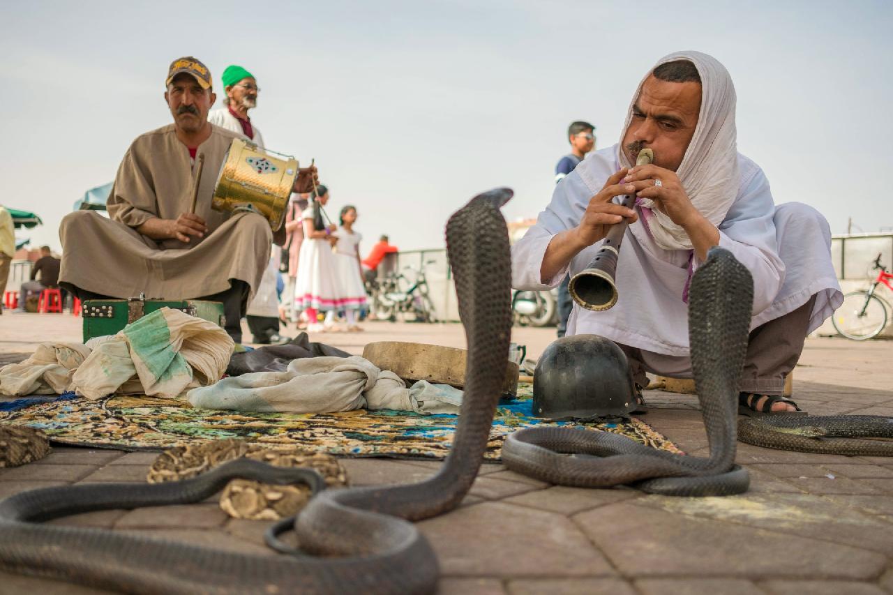Reggeli után, Marrakesh, a "Dél gyöngyének" megtekintése, a vörös várost a 11 században alapították az Almoravidák. Ez a dinasztia csodálatos palotákat és kerteket hagyott Marrakeshre. Első látnivaló a Majorelle kert, amely egy csodás botanikus kert, a béke szigete a nyüzsgő város központjában és a leglátogatottabb múzeuma Marokkónak. Majd a Dar El Bacha palota, amely stílusában kicsit visszavisz a múltba és a Menara kert a víztározójával, távolban az Atlasz hegységgel (a Koutoubia mecsetet kívülről csodálhatjuk meg). A nap további részében megismerkedünk a szukok varázslatos keleti világával, valamint látogatást teszünk egy Berber patikában is. A programunk zárásaként a híres Jemma El Fna téren, a mesemondók, kígyóbűvölők, tűznyelők, akrobaták és utcai pecsenyesütők forgatagának és a tér, ezeregyéjszaka meséibe illő nyüzsgésének felfedezésére nyílik lehetőség. Szállás és vacsora Marrakeshben.